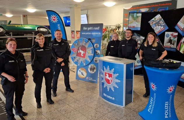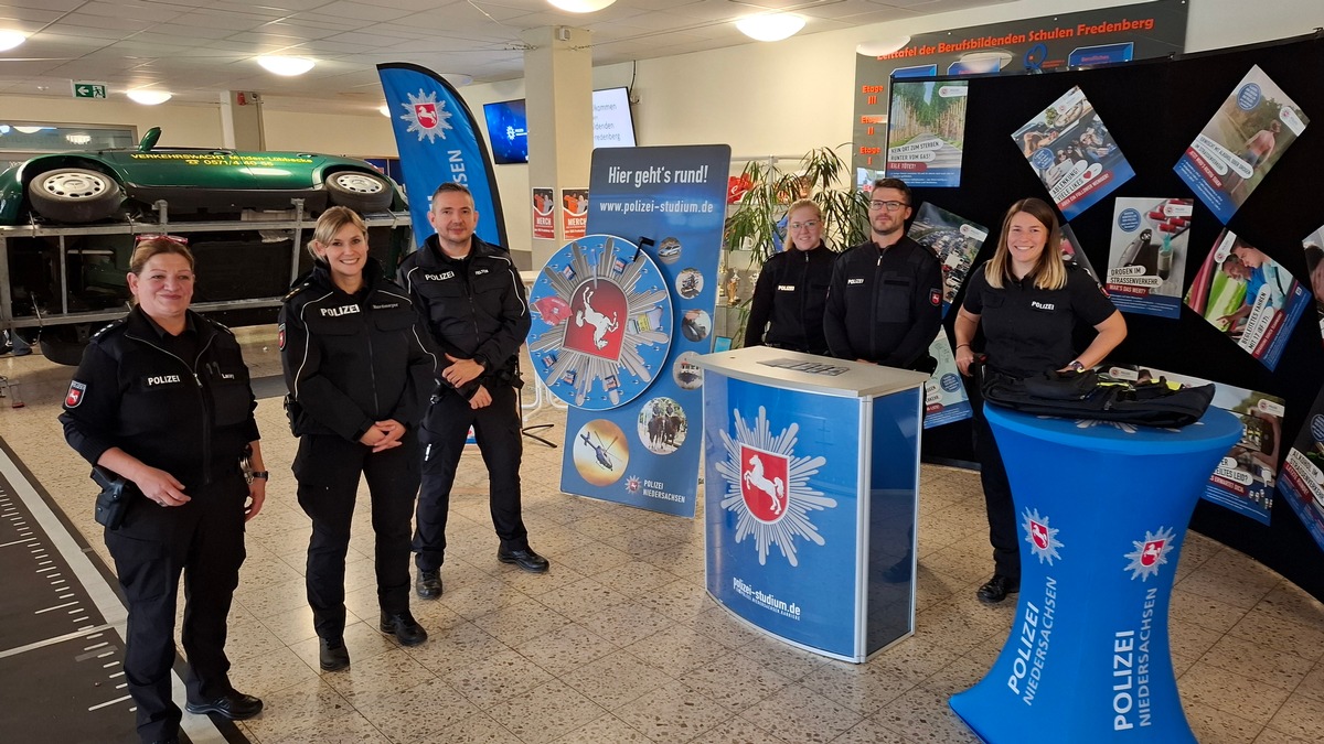 Kathrin Lacey (Verkehrssicherheitsberaterin), Maika Nordmeyer (Leiterin Einsatz), Manuel Felten (Leiter Einsatz- und Streifendienst) sowie das Team der Nachwuchsgewinnung mit Lena Heinemann, Jan Gräsler und Pia Jansen