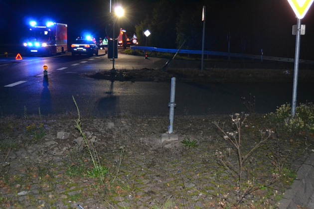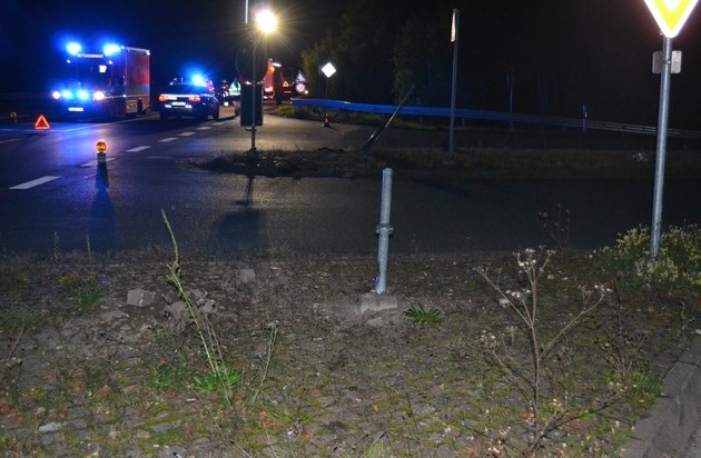 POL-HI: Holle/ Grasdorf - Pkw überfährt zwei Verkehrsinseln und prallt in Schutzplanke - ein Verletzter