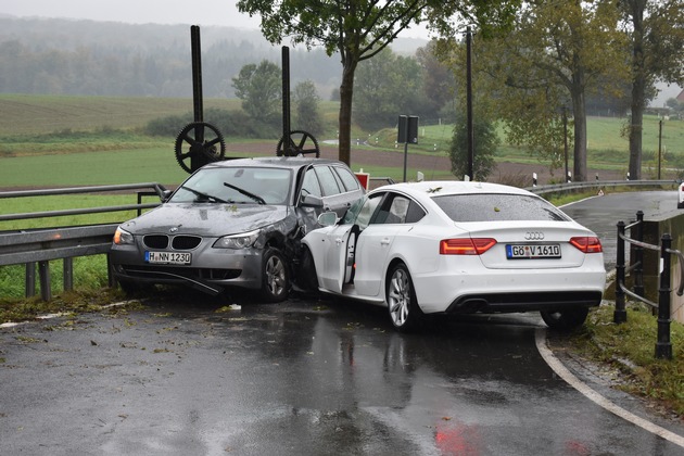 Ein 58-jähriger BMW-Fahrer aus Neustadt am Rübenberge war mit seinem Pkw in Richtung Schlewecke unterwegs. Genau auf der Nettebrücke kam ihn ein 33-jähriger Audi-Fahrer aus Nörten-Hardenberg entgegen. Der Audi-Fahrer missachtete den Vorrang des BMW und prallte genau in Brückenmitte in die linke Seite des BMW.