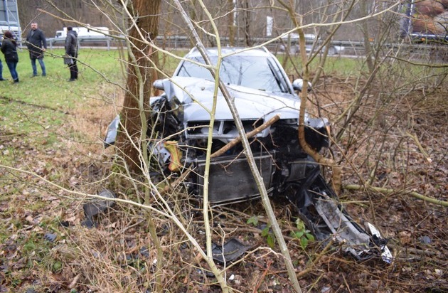 Nach bisherigem Ermittlungsstand befuhr ein bislang unbekannter Sattelzug, zu dem keine weitere Beschreibung vorliegt, den Hauptfahrstreifen der noch zweispurig ausgebauten Autobahn 7 vor der Anschlußstelle Derneburg in Fahrtrichtung Kassel. Ein 39-jähriger Helmstedter befuhr mit seinem grauen Pkw Audi Kombi bereits den Verzögerungsstreifen im Bereich der Anschlußstelle und wollte die Autobahn auf die B 6 in Fahrtrichtung Goslar verlassen. Als der Sattelzug in Höhe des grauen Audi fuhr, wechselte der Sattelzug ohne auf den Audi zu achten ebenfalls auf den Verzögerungsstreifen. Um einen Zusammenstoß zu verhindern, wich der Fahrer des Audi nach rechts aus, bremste und kam auf der feuchten Fahrbahn im Ausfahrtbereich der Anschlußstelle in Fahrtrichtung Derneburg/Hildesheim nach links von der Fahrbahn ab. Er fuhr ca. 30 Meter über die Rasenfläche und prallte derart stark gegen zwei Bäume, daß die Airbags im Pkw auslösten. Der Aufprall muß so stark gewesen sein, daß sich das Heck des Pkw aufrichtete und erst hinter einem weiteren Baum zum Stehen kam. Der gesamte Frontbereich wurde stark eingedrückt und viele Fahrzeugteile waren abgerissen. Durch den Unfall wurden drei der vier Insassen leicht verletzt. Zwei Verletzte, eine 33-Jährige aus Helmstedt und der 39-jährige Fahrzeugführer wurden zur ambulanten Behandlung ins St. Bernward-Krankenhaus nach Hildesheim verbracht. Ein 28-jähriger aus Wolfenbüttel verzichtete auf eine Untersuchung vor Ort. Ein 34-jähriger aus Helmstedt blieb unverletzt. Zur Bergung des Pkw wurde die Ausfahrt in Richtung Hildesheim für ca. 45 Minuten gesperrt.