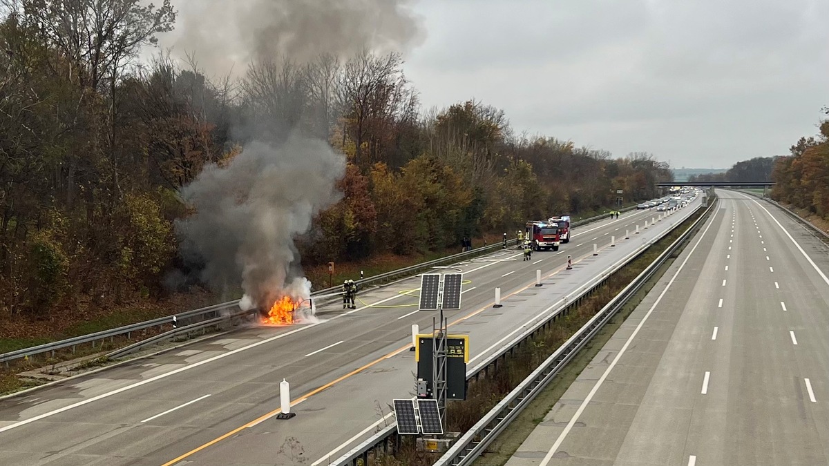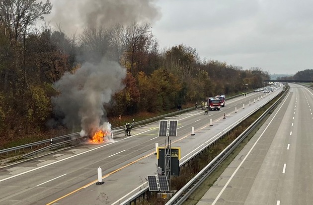 Harsum OT Klein Förste, Landkreis Hildesheim - (ede) Am Samstag, 08.11.2025, gegen 13:55 Uhr, teilte eine Vielzahl an Verkehrsteilnehmern einen PKW-Brand auf der BAB 7 zwischen dem Parkplatz "An der Alpe" und der Anschlussstelle Hildesheim-Drispenstedt in Fahrtrichtung Kassel per Notruf der Polizei und der Feuerwehr mit. Im dortigen Baustellenbereich geriet ein PKW Mercedes während der Fahrt vermutlich aufgrund eines technischen Defekts in Brand. Der 28-jährige Fahrzeugführer aus Hannover konnte seinen PKW noch auf dem Standstreifen zum Stehen bringen. Er wurde durch eingeatmete Rauchgase leicht verletzt. Bei Eintreffen der Rettungskräfte wurde zunächst in beide Fahrtrichtungen eine Vollsperrung eingerichtet. Während die Richtungsfahrbahn Hannover nach zehn Minuten wieder freigegeben werden konnte, blieb die Richtungsfahrbahn Kassel während der Löscharbeiten für eine Stunde vollgesperrt. Durch die Autobahnpolizei Hildesheim konnte daraufhin der Verkehr einstreifig durch den Baustellenbereich an der Einsatzörtlichkeit vorbeigeführt werden. Gegen 16:00 Uhr wurde die Richtungsfahrbahn Kassel nach der Bergung des vollständig ausgebrannten PKW gänzlich freigegeben. Es bildete sich ein Rückstau von ca. fünf Kilometern. Die Schadenhöhe wird auf 15.000EUR geschätzt. Neben der Autobahnpolizei Hildesheim waren die Freiwilligen Feuerwehren aus Hotteln und Algermissen im Einsatz. Zudem wurden die Untere Wasserbehörde des Landkreises Hildesheim sowie die Autobahnmeisterei Hildesheim angefordert, da kontaminiertes Löschwasser in die Kanalisation gelaufen war.