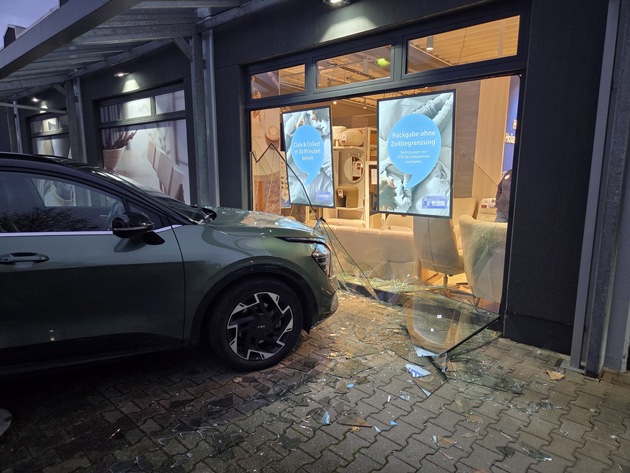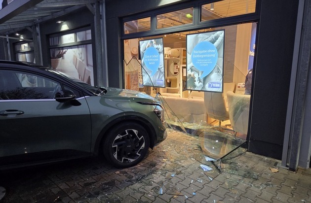Am Donnerstag (16.10.2025) kam es gegen 18:15 Uhr zu einem Unfall in Holzminden, bei dem eine große Fensterscheibe eines Einrichtungsgeschäfts zerstört wurde.