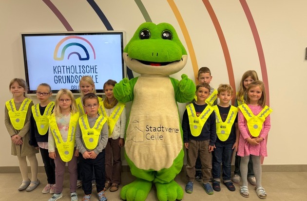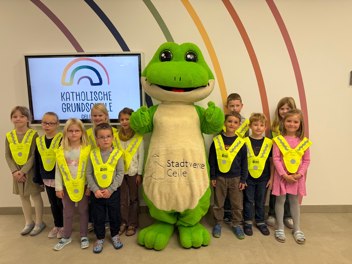 Am vergangenen Dienstag (28.10.2025) erhielten die Erstklässlerinnen und Erstklässler in Stadt und Landkreis Celle im Rahmen der Verkehrssicherheitsaktion "Sicher zur Schule" reflektierende Warnüberwürfe. Die Übergabe erfolgte durch Jochen Rodenwaldt von der Verkehrswacht Celle Stadt und Land e.V. in Zusammenarbeit mit den Stadtwerken Celle GmbH und unter Mitwirkung der Polizei Celle. Mit Beginn der dunklen Jahreszeit soll die Aktion dazu beitragen, die Sichtbarkeit der jüngsten Verkehrsteilnehmenden im Straßenverkehr deutlich zu erhöhen. Die Dreiecküberwürfe sind leicht anzulegen, gut sichtbar und werden von den Landesverkehrswachten sowie den Verkehrssicherheitsberatern der Polizei ausdrücklich empfohlen. "Gerade in den Morgenstunden, wenn es noch dämmrig ist, können reflektierende Materialien entscheidend dazu beitragen, dass Kinder im Straßenverkehr frühzeitig erkannt werden", betont Karsten Wiechmann, Verkehrssicherheitsberater der Polizeiinspektion Celle. "Wir freuen uns über das Engagement der Verkehrswacht und der Stadtwerke Celle, die mit dieser Initiative einen wichtigen Beitrag zur Schulwegsicherheit leisten." Die Polizei Celle unterstützt die Aktion im Rahmen ihrer Präventionsarbeit und appelliert auch an Eltern und Lehrkräfte, mit gutem Beispiel voran zu gehen und regelmäßig Warnüberwürfe oder andere reflektierende Kleidung zu tragen.