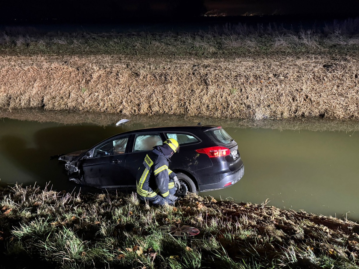Der Focus rutschte in den an der Straße entlangführenden Ritscher Schleusenfleth und blieb dabei halb im Wasser stehen.