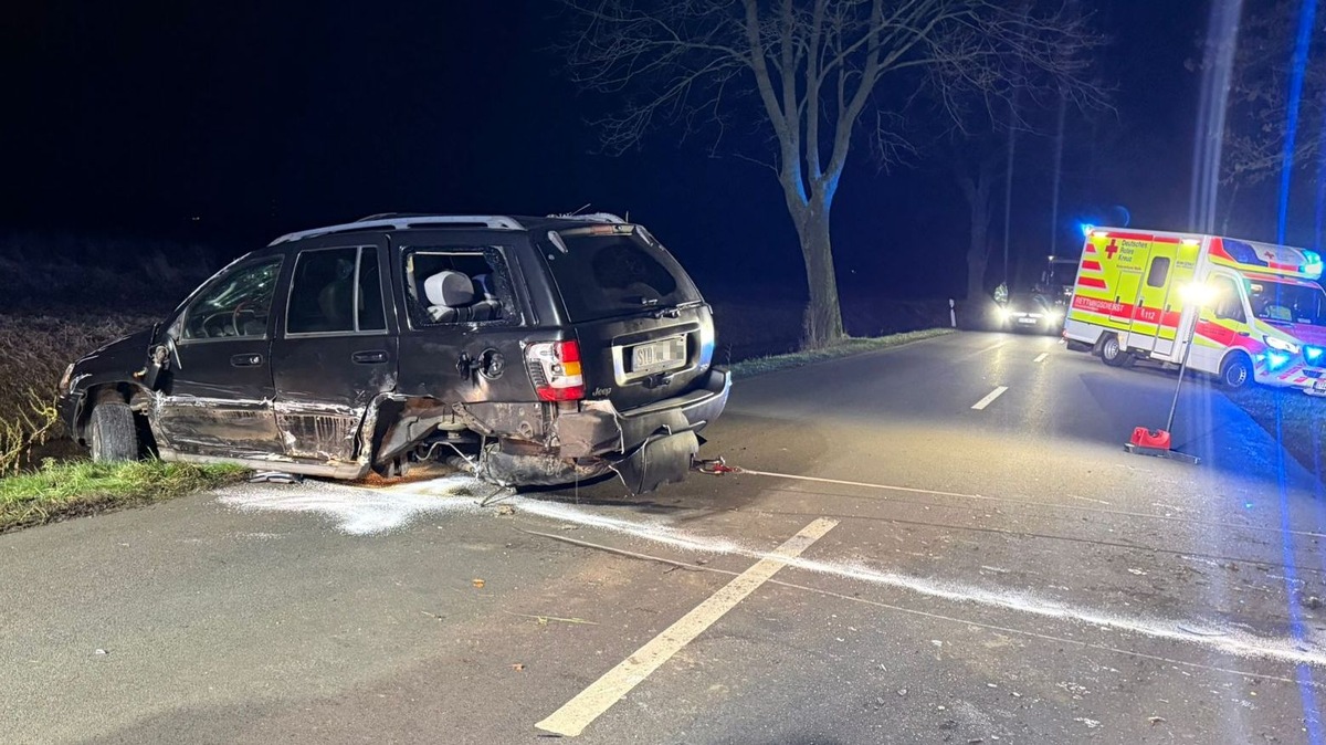 Zu der Zeit war eine 49-jährige Fahrerin eines Ford Focus aus Drochtersen mit ihrem Auto in Richtung Ritsch unterwegs. Aus bisher ungeklärter Ursache geriet sie dabei leicht rechts auf den Seitenrand, lenkte gegen und kam so auf die Gegenspur. Dort kam ihr ein 44-jähriger Fahrer eines Jeep Grand Cherokee entgegen. Der Focus touchierte den Jeep, der dadurch ins Schleudern geriet und sich einmal überschlug.