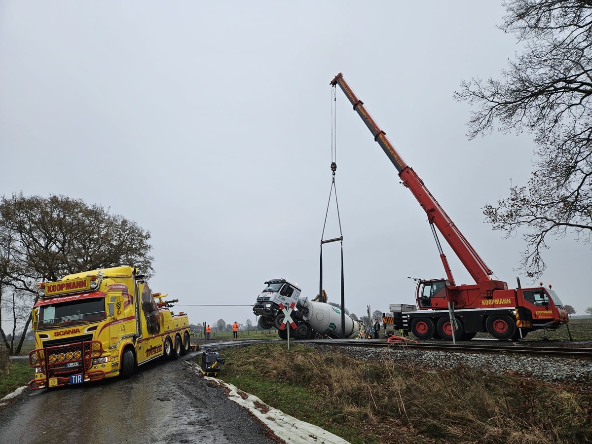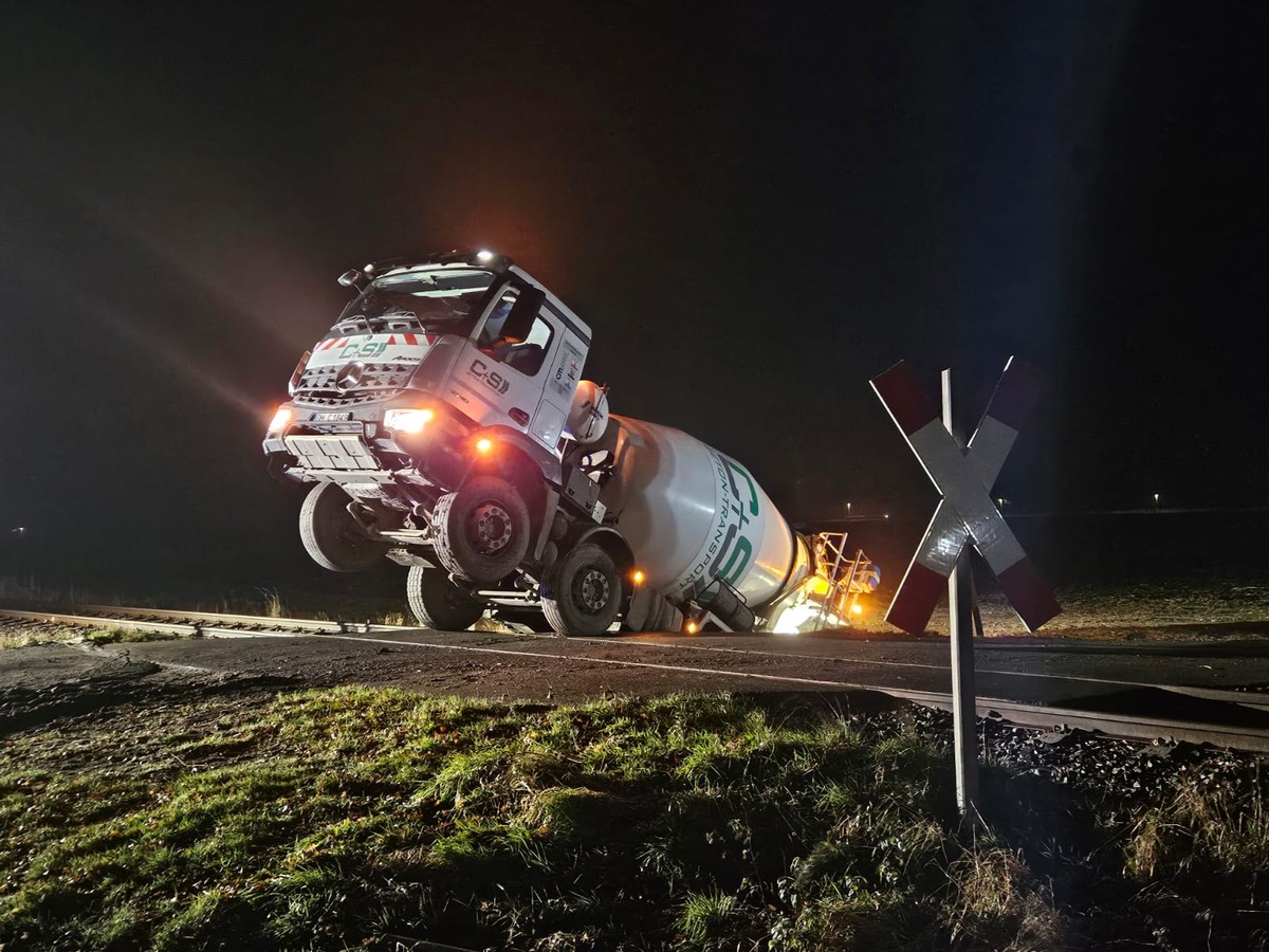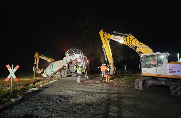 POL-STD: Betonmischer kommt von der Fahrbahn ab und blockiert Bahnstrecke