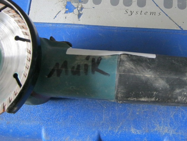 Hilfreich: Auf einem Werkzeugkoffer aus dem Bereich Heizungsbau sowie auf einem Winkelschleifer befindet sich der Name "Maik".