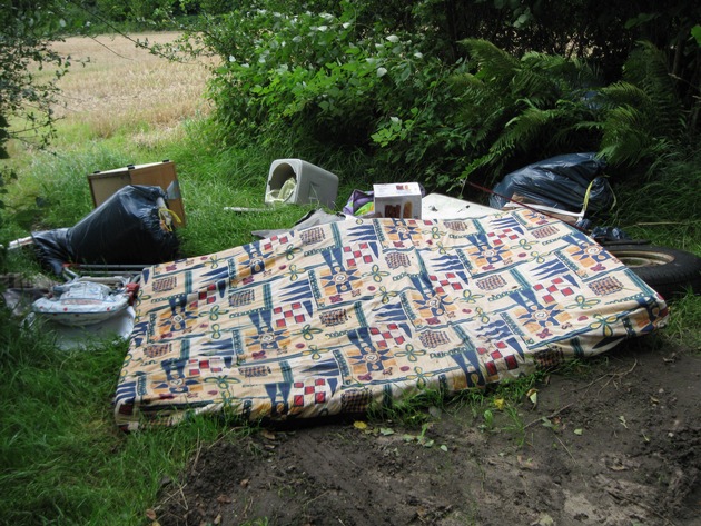 Ein Jäger fand am Montagmorgen, den 08.08.2016, eine größere Ablagerung von Sperrmüll in der Feldmark nahe der Gravensteiner Straße in Gremmerup und meldete dies der Polizei in Husby. Der Unrat wurde offensichtlich am vergangenen Wochenende dort unerlaubt entsorgt. Neben einigen Möbelstücken, drei Müllsäcken mit Tapetenresten und anderer diverser Kleinteile konnten auch Gegenstände gefunden werden, die auf den Umweltsünder schließen ließen. Gegen den 25-Jährigen wurde ein Ordnungswidrigkeitenverfahren eingeleitet. Ihn erwartet vermutlich ein dreistelliger Bußgeldbetrag.