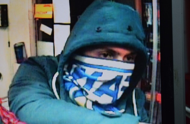 Nach einem versuchten Raub am Samstag, 17.12.2016, in Flensburg sucht die Kriminalpolizei mit Hilfe von Täterbildern nach Zeugen. Gegen 21.20 Uhr hatten zwei maskierte Personen den Kiosk in der Flurstraße betreten und die Mitarbeiterin mit einer Pistole bedroht. Sie wurde zur Herausgabe des Geldes aus der Kasse aufgefordert. Die 58-jährige Frau begab sich in einen separaten Raum und verschloss diesen bis die Täter den Kiosk ohne Beute verließen.
