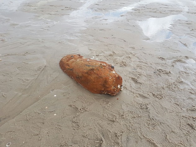 Sie lag ca. 40 m vom Flutsaum entfernt im Watt und wurde im Laufe der Zeit durch die Gezeiten freigespült. Es handelt sich vermutlich um eine deutsche Fliegerbombe aus dem 2. Weltkrieg mit einer Kapazität von 500 Kg.