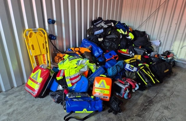 - Diverse Uniformteile des Rettungsdienstes und der Feuerwehr - Diverse Polizeiuniformteile - Mehrere BOS-Digitalfunkgeräte - Medizinische Geräte, darunter auch EKG-Geräte - Einsatz- und Führungsmittel der Rettungsdienste - PTB-Waffen, Schlagstöcke, Tierabwehrsprays und Reizstoffsprühgeräte - gefälschte Dienstausweise verschiedener Organisationen.