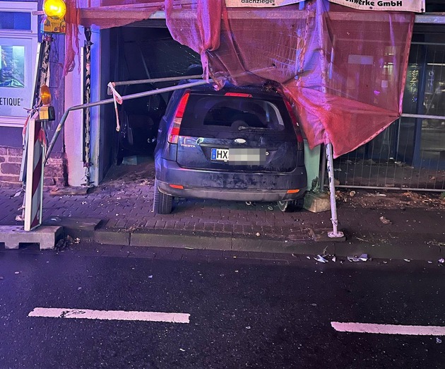 POL-HX: Auto fährt in eingerüstetes Geschäftshaus