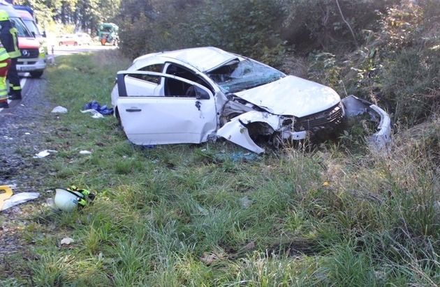 Am gestrigen Mittwochmittag (01. Oktober) ist es zu einem schweren Verkehrsunfall auf der Landstraße L 728 zwischen Brachthausen und Hilchenbach gekommen. Ein Opel Astra GTC überschlug sich mehrfach und alle drei Fahrzeuginsassen verletzten sich.
