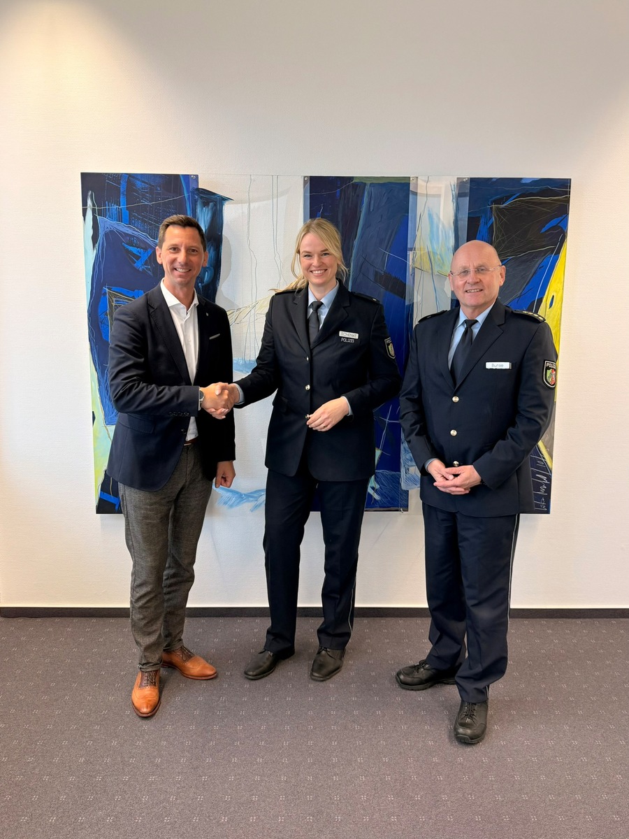 Der Landrat und Leiter der Kreispolizeibehörde Andreas Müller hat die frisch gebackene Polizeirätin in der vergangenen Woche im Kreishaus begrüßt.