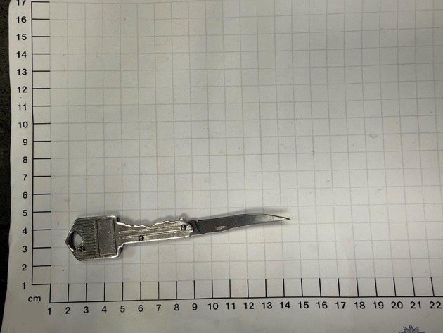 Die Beamten fanden anschließend das Schlüsselmesser des Angreifers und beschlagnahmten es. Sie belehrten ihn, woraufhin er von seinem Aussageverweigerungsrecht Gebrauch machte. Sie fertigten Lichtbilder an und sicherten seine Fingerabdrücke. Ein freiwillig durchgeführter Atemalkoholtest ergab einen Wert von ca. 1,6 Promille. Nach Abschluss aller Maßnahmen brachten die Beamten ihn in das zentrale Polizeigewahrsam in Dortmund.