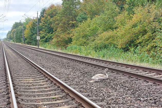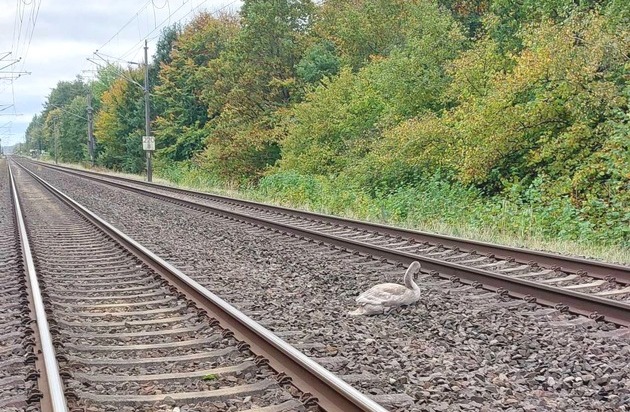 Am Donnerstagnachmittag (16.10.2025) wurde durch eine Streife der Bundespolizei ein junger Schwan aus den Gleisen gerettet.