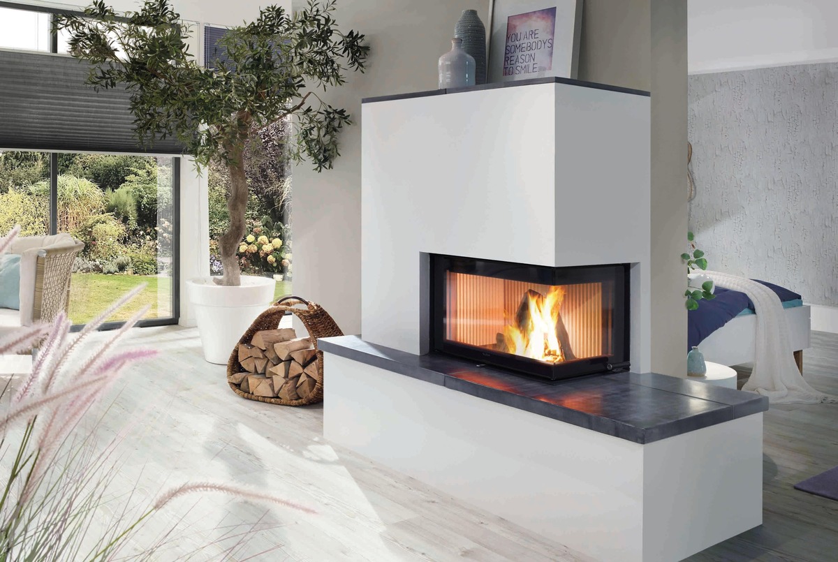 Ob als flache Variante, Durchsicht-Modell oder Eck-Ausführung - der Kamineinsatz lässt sich flexibel in unterschiedliche Raumkonzepte integrieren. Er trennt auf elegante Weise Wohn- und Schlafbereich oder schafft eine gemütliche Kaminecke. In Kombination mit einem Speicher erwärmt sich der Raum über die Sichtscheibe schnell, während überschüssige Energie zwischengespeichert und über Stunden gleichmäßig abgegeben wird.