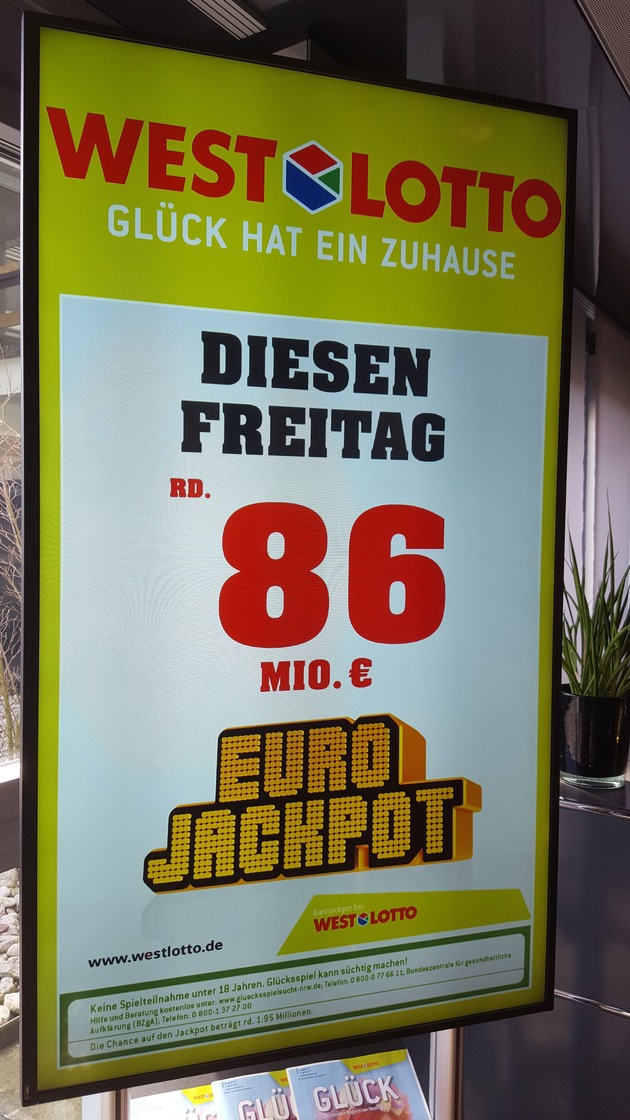 Eurojackpot von fast 87 Millionen Euro geknackt