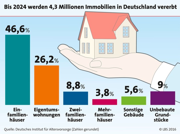 Gleichzeitig werden die Erblasser immer älter und können ihren Lebensabend viele Jahre genießen. "Gut beraten ist darum, wer mit einer soliden Baufinanzierung selbst den Schritt ins Wohneigentum wagt, um sich und seiner Familie den Traum vom Eigenheim zu erfüllen", sagt Sabine Schmitt von der LBS.