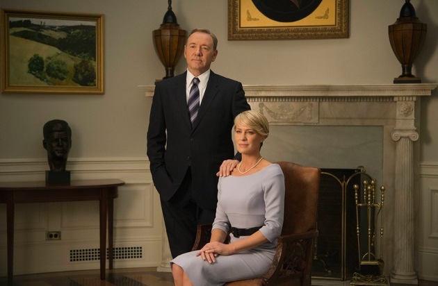 18. September 2015. Kevin Spacey interessierte sich schon immer für US-Präsidenten: Während der High School klebte er Umschläge für Jimmy Carters Wahlkampf, später zockte er mit Bill Clinton. In der dritten Staffel "House of Cards" ist der zweifache OSCAR® Gewinner nun selbst der mächtigste Mann der Welt. Oben angekommen gilt ab sofort nur eins: Oben zu bleiben. An der Seite des grandios bösen Spacey brilliert dabei Robin Wright als First Lady ... ProSieben MAXX zeigt die dritte Staffel von David Finchers mehrfach preisgekrönter US-Serie "House of Cards" (13 Folgen) ab 21. September 2015 als viertägige Eventprogrammierung und Free-TV-Premiere: zum Start mit vier Folgen, vom 22. bis 24. September mit drei Episoden.