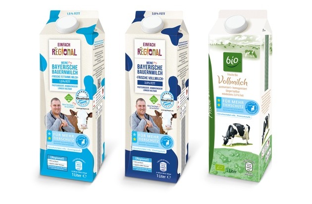 ALDI SÜD bietet seinen Kunden ab 4. September drei verschiedene Milchsorten, die mit der Einstiegs- und Premiumstufe des Tierschutzlabels gekennzeichnet sind. In der Einstiegsstufe (1 Stern) wird "meine Bayerische Bauernmilch" als frische fettarme Milch und frische Vollmilch in den Filialen aller bayerischen Regionalgesellschaften angeboten. Neben dem Label "Für Mehr Tierschutz" trägt sie erstmals die neue Bildmarke "Einfach Regional", die für die Regionalität einzelner Produkte bei ALDI SÜD steht. Einzelne, teilnehmende Landwirte sind auf den Verpackungen abgebildet.