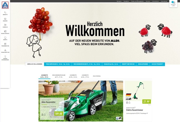 Informationen, Service und Transparenz - dafür steht die neue ALDI Website. Dank der aktualisierten, innovativen Struktur der Seite gelangt man jetzt noch einfacher zu detaillierten Beschreibungen der Artikel und Angebote. Sei es am Computer, auf dem Smartphone oder Tablet: ab sofort werden aktuelle und kommende ALDI-Magazine auf unterschiedlichen Endgeräten optimal dargestellt. Unter dem Menüpunkt "Themenwelten" wird darüber hinaus Wissenswertes aus den Bereichen Wein, Obst und Gemüse sowie Kaffee und Tee vorgestellt.