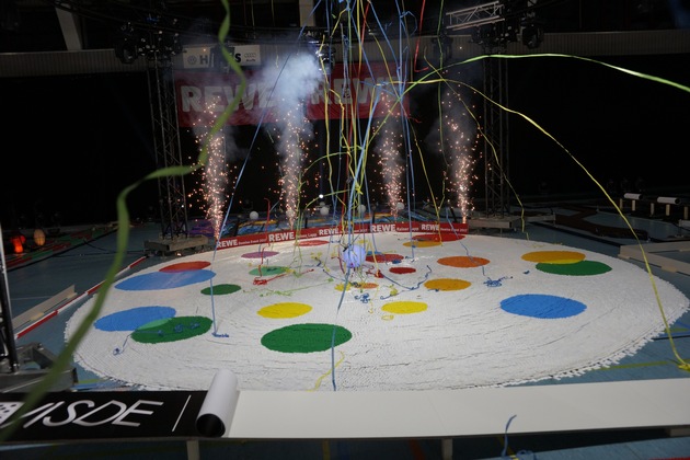 Nach dem Fall der Steine ging es an die manuelle Auszählung der bei den beiden Weltrekorden umgefallenen Dominosteine, so dass RID-Rekordrichter Olaf Kuchenbecker wenig später für das REKORD-INSTITUT für DEUTSCHLAND die beiden neuen Weltrekorde offiziell bestätigten konnte: