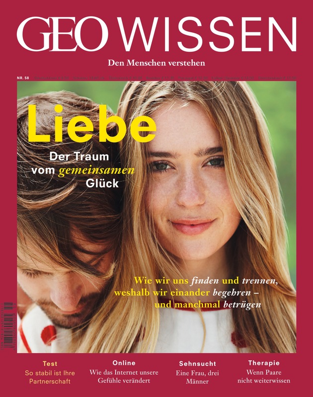 Die neue Ausgabe von GEO WISSEN (Nr. 58) erscheint heute, hat einen Umfang von 164 Seiten und kostet 9,50 Euro (die Ausgabe mit der DVD "Paare erzählen von der Liebe" 16,50 Euro).