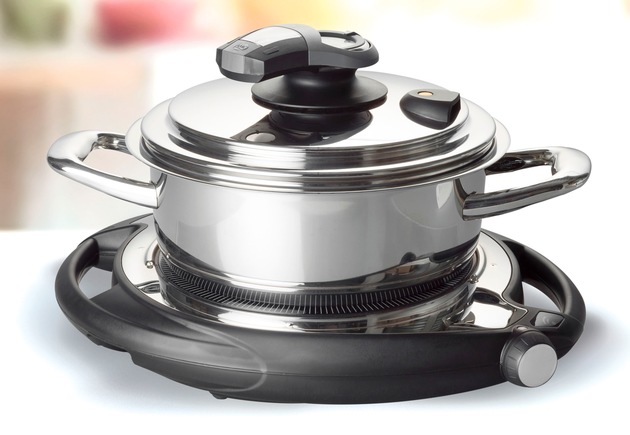 Der vom unternehmenseigenen AMC Forschungszentrum in Rotkreuz/Schweiz neu entwickelte Deckel EasyQuick passt auf jeden AMC Topf mit 24cm oder 28 cm Durchmesser, verschließt diesen fest und gart die Lebensmittel schonend mittels Dampf bei 97 bis 99 Grad. Mit EasyQuick kann jeder AMC Kunde die Vorteile des immer beliebteren Dampfgarens erstmals auch in einem Kochtopf nutzen. Die Nährstoffe bleiben bei dieser schonenden Zubereitung ebenso gut erhalten wie der Eigengeschmack des Garguts. In Verbindung mit der mobilen Hightech-Cerankochplatte "AMC Navigenio" läuft der Kochprozess sogar vollautomatisch.