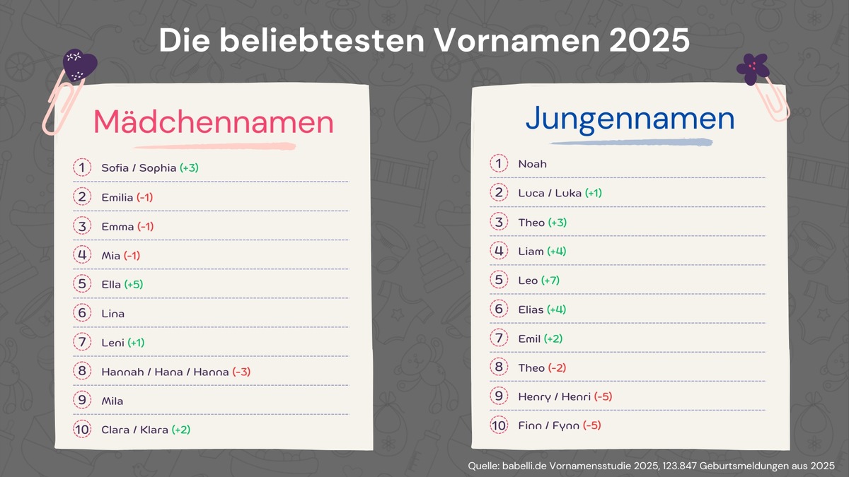 Vornamensstudie: Das sind die beliebtesten Vornamen 2025