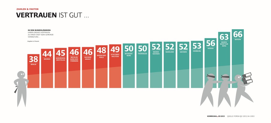 Exklusivkommentar von Forsa-Chef Prof. Manfred Güllner in KOMMUNAL zu aktueller Bürgervertrauensstudie* / Vertrauen in die Verwaltung in Berlin am niedrigsten, in Bayern am größten