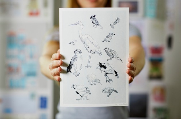 Von April bis Juni richtete Etsy.com, der Marktplatz für Handgemachtes und Vintage, die Etsy Awards 2016 aus und machte sich auf die Suche nach kreativen Design-Talenten aus Deutschland und Österreich. Mit ihrer eindrucksvollen schwarz-weiß Zeichnung Neuseeländischer Vögel begeisterte Theresa Grieben die Jury und wurde zur Gewinnerin in der Kategorie "Art, Illustration & Paper Goods" gekürt.
