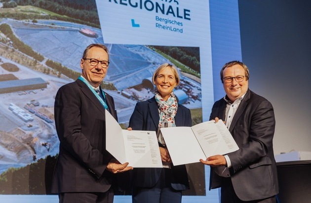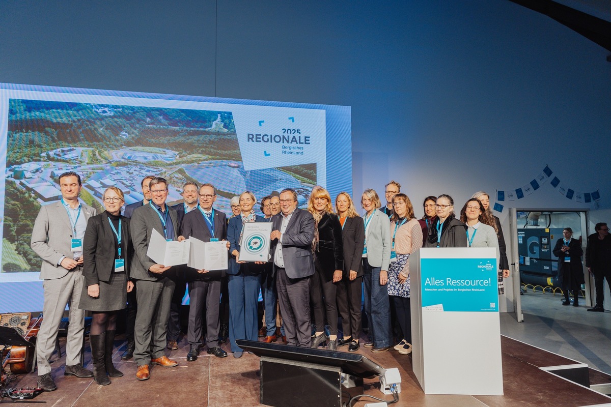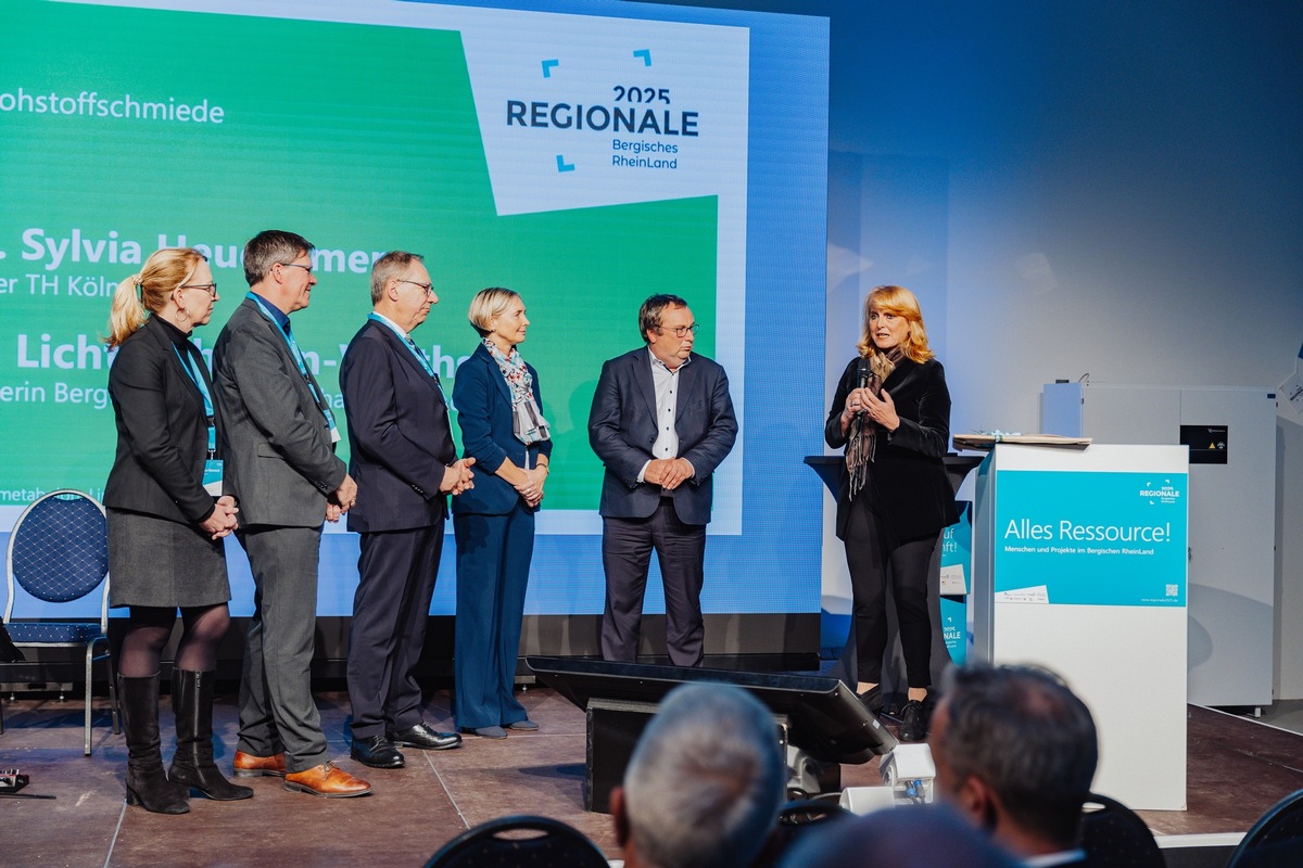 Mit rund 12,4 Millionen Euro fördert die Europäische Union das Projekt „:bergische rohstoffschmiede“ (:brs) des Bergischen Abfallwirtschaftsverbandes (BAV), des Oberbergischen, Rheinisch-Bergischen und des Rhein-Sieg-Kreises und der TH Köln. Den Förderbescheid übergab Oliver Krischer, Minister für Umwelt, Naturschutz und Verkehr des Landes NRW, im Rahmen des Kongresses „Alles Ressource!“ der REGIONALE 2025 Bergisches RheinLand auf :metabolon, dem Innovationsstandort für zirkuläre Wertschöpfung.
