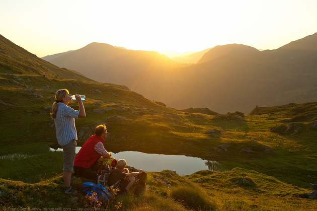 Für unvergessliche Augenblicke sorgt die Sonnenaufgangswanderung zum Gipfel des Falkert im Biosphärenpark Nockberge. Los geht es im Morgengrauen, genauer gesagt um 4 Uhr in Bad Kleinkirchheim. Der Weg zum Gipfelkreuz führt über taufrische Almwiesen, hier tauchen die ersten Sonnenstrahlen die Nockberge in ein goldenes Licht. Zurück geht es über das Sonntagstal zum glitzernden Falkertsee, wo ein stärkendes Sennerfrühstück mit Spezialitäten aus der Region, z. B. Kärntner Frigga, Sterz oder Kärntner Reindling wartet. Begleitet werden die Frühaufsteher von speziell geschulten Biosphärenparkrangern.