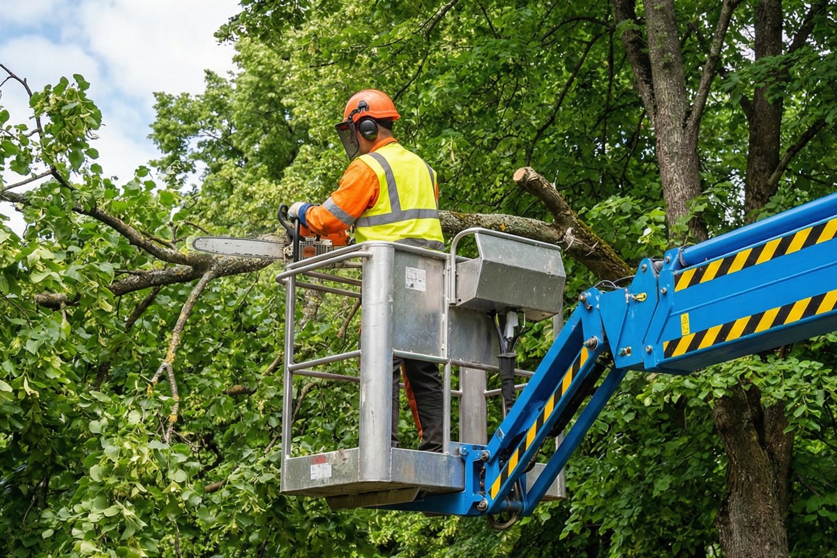 Sichere Lösung dank einer Baumfällung mit Hebebühne