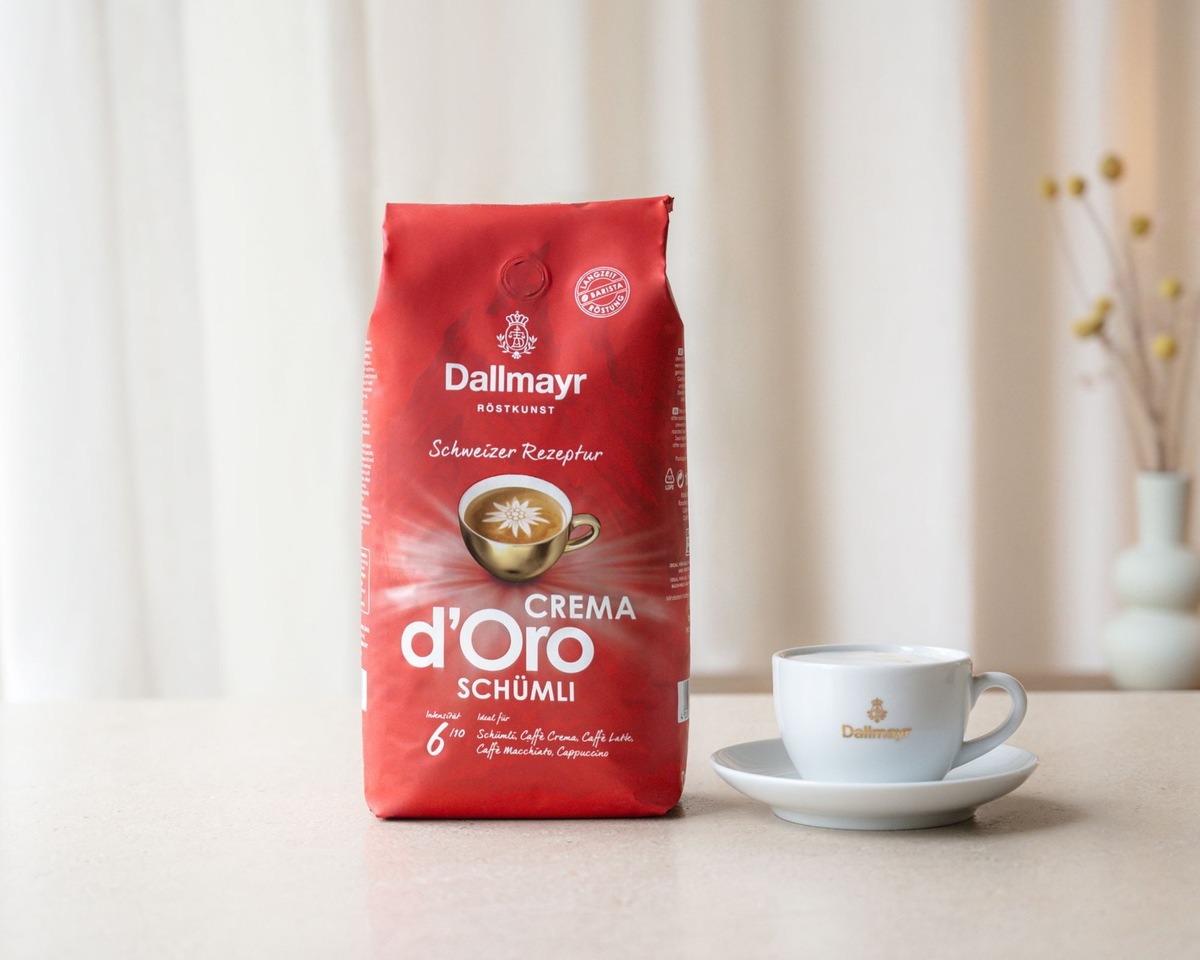 Neben der neuen capsa-Variante gibt es den Schümli bereits seit Anfang des Jahres auch als Dallmayr Crema d’Oro Schümli Ganze Bohne in der praktischen 1-kg-Packung – ideal für Kaffeevollautomaten und Siebträger. Ob pur, mit geschäumter Milch, mit Gewürzen oder einem Hauch Schokoladenpulver – der Crema d’Oro Schümli ist vielseitig einsetzbar und überzeugt mit jeder Zubereitung.