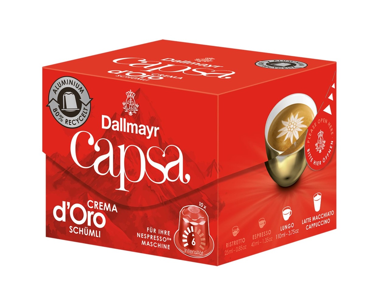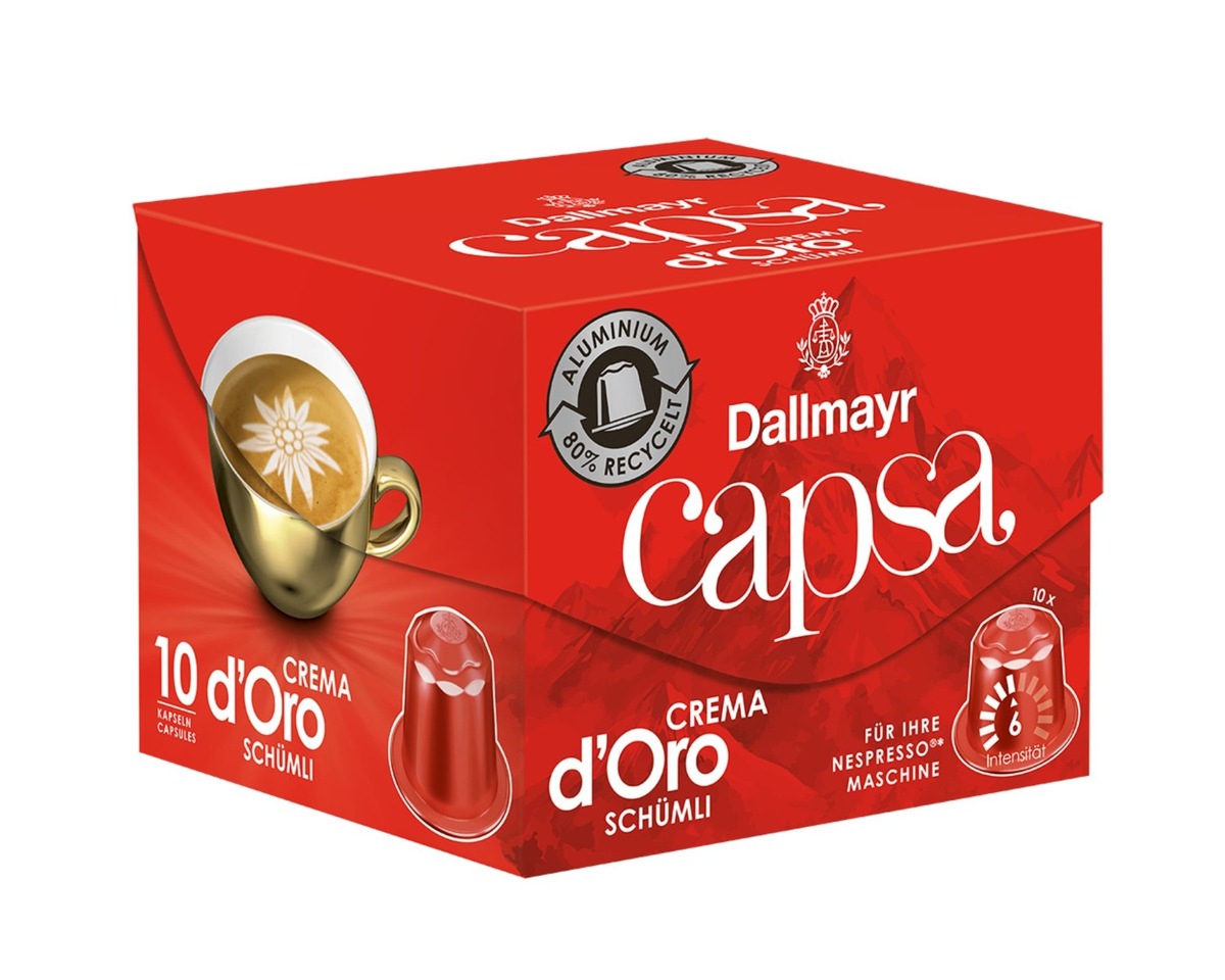 Grüezi Schwiiz! Mit der neuen capsa Crema d’Oro Schümli bringt Dallmayr ein Stück Schweizer Kaffeekultur in die Kapsel – vollmundig, cremig und unverwechselbar im Geschmack. Ob pur, als Cappuccino oder Latte Macchiato: Der Crema d’Oro Schümli ist vielseitig, aromatisch und immer ein Genussmoment. Ab Anfang November wird capsa Crema d’Oro Schümli im Handel erhältlich sein.