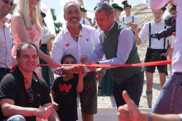 Bei Kaiserwetter auf dem 10.000 Quadratmeter dimensionierten Eventgelände weeIsland mitten im Olympiapark gab sich die Prominenz aus Politik, Wirtschaft, Sport und Kultur die Ehre, um bei der feierlichen Eröffnung vor 500 Gästen mit dabei zu sein. Punkt 14.30 Uhr intonierte die Feldkirchner Blaskapelle den Bayerischen Defiliermarsch und die 40 Schuhplattler des Trachtenvereins Buchenberg riskierten eine kesse Sohle mitten im Sand. "Schuhplatteln at its best!" Cengiz Ehliz, "Erfinder" des Cashback-Systems "wee" eröffnete den aktuell weltweit wertvollsten Sandberg mit einem zufriedenen Lächeln: "Ich bin fest davon überzeugt, dass unser Team innerhalb der nächsten vier Wochen das innovative Cashback-System "wee" in München als erste Station unserer Europastrategie erfolgreich implementiert."