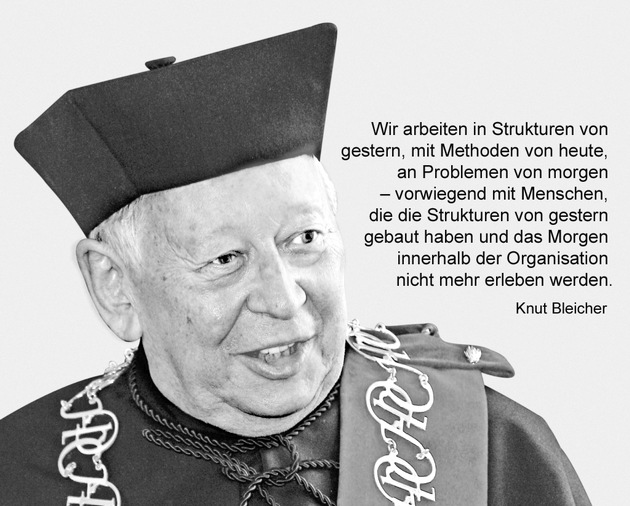 St. Gallen, August 2017 - Prof. Dr. Dres. h.c. Knut Bleicher war ein Wegbereiter ganzheitlicher ökonomischer Denkweisen und Pionier praxisorientierter Managementlehre. Er begründete das St. Galler Konzept Integriertes Management, das er bis zu seinem Lebensende am Tor zum Appenzeller Land, St. Gallen, und am Tor zur Welt, in Hamburg, weiterentwickelte.