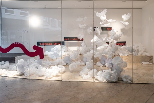 Wer ab dem 30. Oktober die Ausstellung besucht wird, direkt selbst zum Mitarbeitenden. Mit Arbeitsweste und Sammelkatalog ausgestattet, stempeln die Besucher/innen ein. Werte, Materialien, Kreisläufe stehen im Fokus. Wer entscheidet, was wertgeschätzt wird?