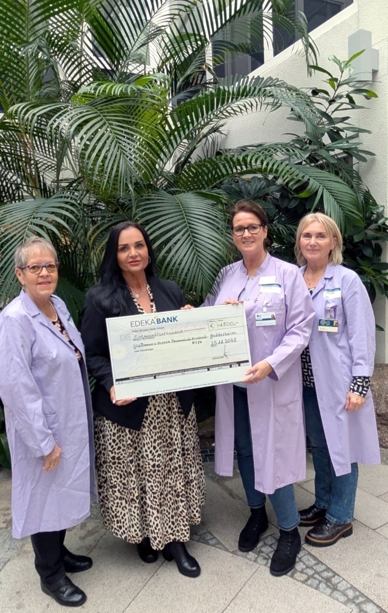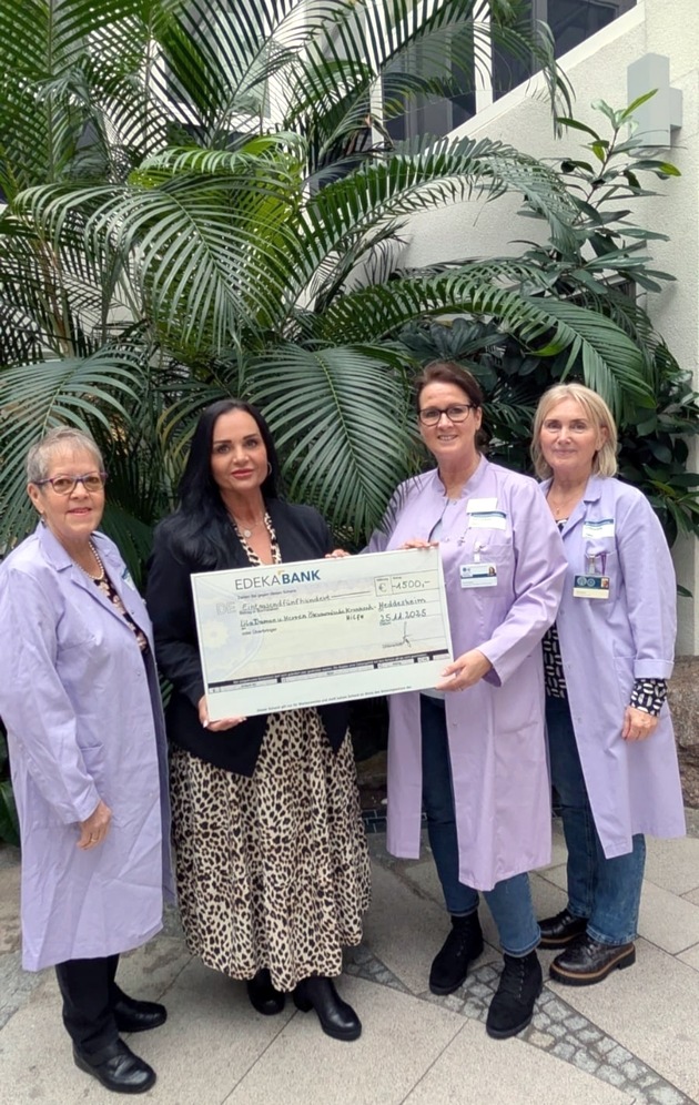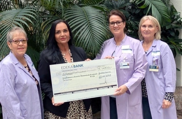 Heidelberg/09.12.2025 – Die Lila Damen und Herren – Ökumenische Krankenhaus-Hilfe (ÖKH) am Universitätsklinikum Heidelberg erhält eine Spende über 1.500 Euro von Mitarbeitenden von Edeka Südwest und ihren Produktionsbetrieben. Im Rahmen ihrer Initiative „Cent-Spende – Edeka Südwest hilft“ spenden diese den Cent-Betrag ihrer monatlichen Lohnabrechnung und unterstützen damit jedes Jahr etwa 20 soziale Organisationen und Aktionen.