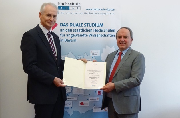 Gleichzeitig mit der Unterzeichnung einer neuen Kooperationsvereinbarung zum dualen Studium wählten die bayerischen Hochschulen für angewandte Wissenschaften Professor Dr. Franz Boos von der Hochschule Hof zum wissenschaftlichen Leiter. Ab sofort ist Boos verantwortlich für die strategische Weiterentwicklung des dualen Studiums in Bayern.