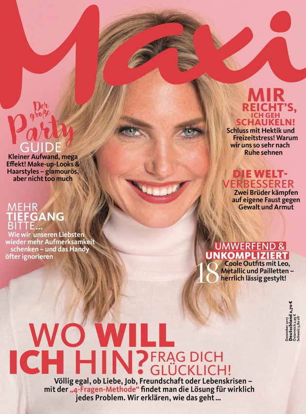 Maxi ist das erste echte Lifestyle-Magazin, das mit authentischen und herzlichen Storys begeistert und nicht auf Glanz und Stil verzichtet. Das Magazin richtet sich an die anspruchsvollen 20 bis 39-jährigen Frauen mit Herz, Kopf und Humor. Zeitgeschehen, Leben & Liebe, Food, Wohnen, Kultur und Reise sind die Themen, die die Maxi-Leserinnen bewegen und zu denen Maxi facettenreiche Inspirationen bietet: Aktuelle Fashiontrends werden in ausdrucksstarken Modestrecken und mit vielfältigen Styling-Tipps in Szene gesetzt. Beauty-Trends werden in stimmungsvoller Bildsprache präsentiert. Maxi spiegelt alle Aspekte des modernen Lebens wider - jedoch immer auf eine einzigartige, etwas andere Art & Weise.