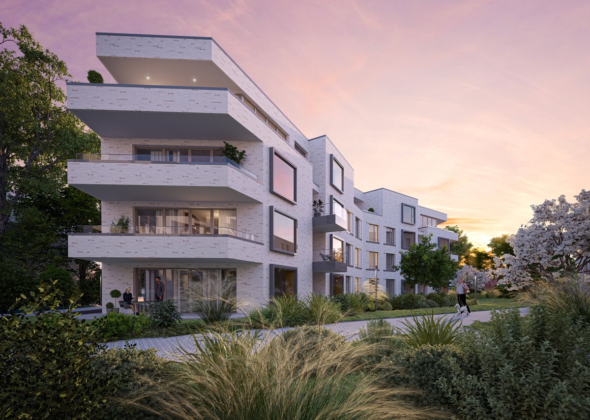 Helle Ziegelriemchenfassaden und großzügige Fensterflächen prägen das künftige Erscheinungsbild. Die Wohnungen mit ein bis fünf Zimmern und Wohnflächen zwischen 37 und 180 m² bieten vielfältige Grundrisse für unterschiedliche Lebensentwürfe – geeignet sowohl zur Eigennutzung als auch zur Kapitalanlage. Wer etwa in nachhaltigen Neubau investiert und seine erworbene Eigentumswohnung vermietet, kann von steuerlichen Vorteilen des Wachstumschancengesetzes in Form von degressiver und zusätzlicher Sonder-AfA profitieren. Gemeinschaftlich genutzte Innenhöfe, Spiel- und Grünflächen bilden einen parkähnlichen Freiraum, der Geselligkeit und Rückzug gleichermaßen ermöglicht. Jede Wohnung verfügt über Balkon, Terrasse oder Gartenanteil.