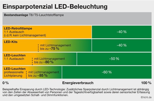 Wie ganzheitlich geplante Beleuchtungsanlagen heute zu mehr Energieeffizienz, Nachhaltigkeit und Lichtqualität beitragen, erklärt die ZVEI-Brancheninitiative licht.de in folgender Pressemitteilung. Moderne Lichtsysteme arbeiten bedarfsgerecht, sparen bis zu 85 Prozent Energie und berücksichtigen den gesamten Lebenszyklus von der Planung bis zur Entsorgung. Damit leisten sie einen wichtigen Beitrag zur Umsetzung der EU-Ziele für energieeffiziente Gebäude.