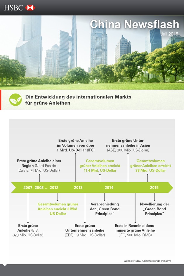 Ob sich in China ein echter Markt für grüne Anleihen entwickelt, hängt jedoch davon ab, wie schnell sich die chinesische Regierung auf Leitlinien darüber verständigt, welche Kriterien eine Anleihe erfüllen muss, um als "grün" zu gelten. International existieren bereits Leitlinien für die Begebung grüner Anleihen, auf die sich die größten Banken der Welt verständigt haben: die "Green Bond Principles". Der chinesische Markt hingegen ist noch sehr fragmentiert. Experten der HSBC gehen davon aus, dass Peking noch in diesem Jahr einen ersten Vorschlag für gemeinsame Leitlinien vorstellen wird, zunächst für den Interbankmarkt. Dies dürfte den Startschuss für die weitere Systematisierung des Marktes bilden. Zu den ersten Profiteuren dürften Unternehmen aus den strategischen Wachstumsbranchen Chinas gehören: Energie und Umwelt, IT, Bio-Technologie, Maschinenbau, erneuerbare Energien, neue Werkstoffe und Elektromobilität.