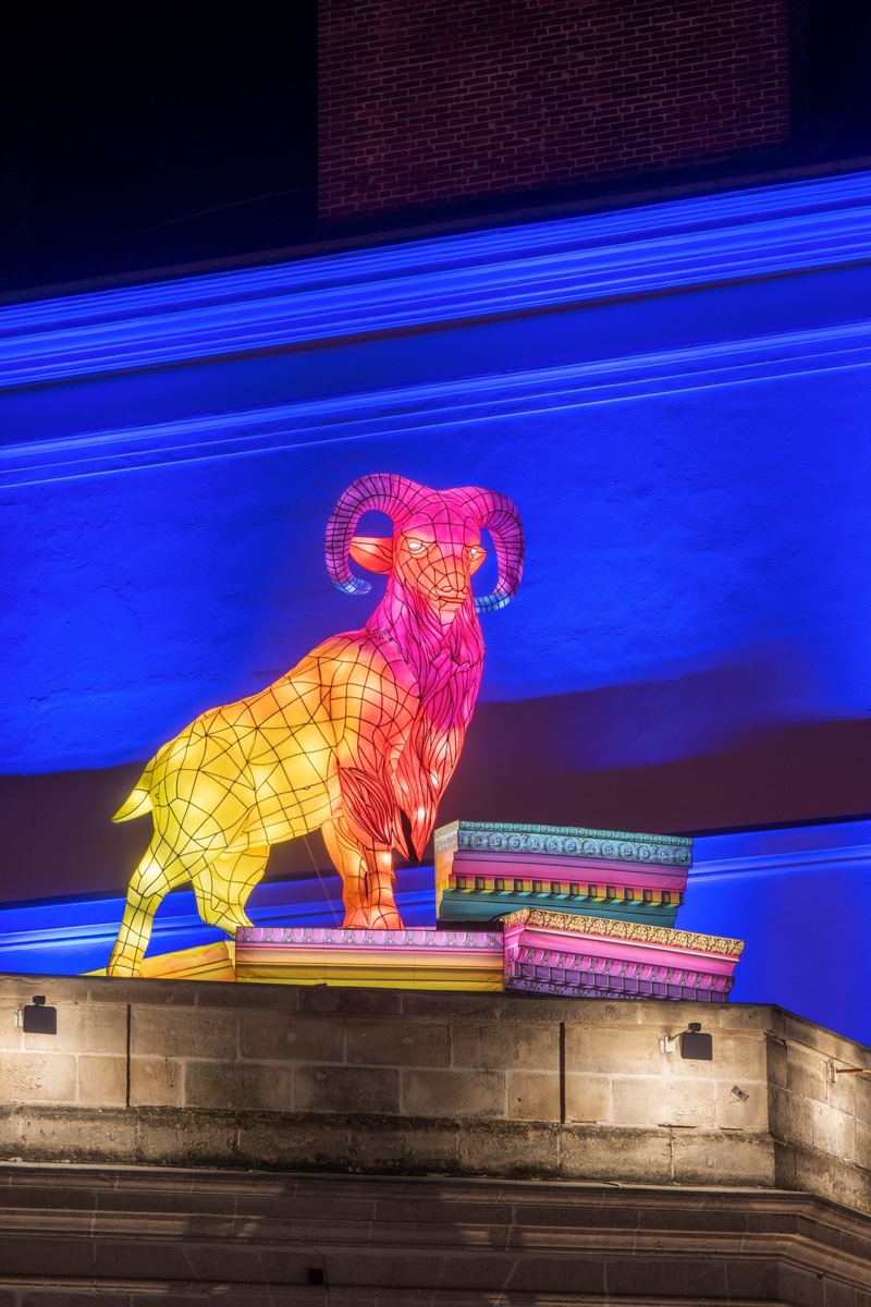 Zwischen Alltag und Popkultur bewegt sich auch die immersive Lichtkunst von Vincent Olinet, der mit seiner winterlichen Kunstinstallation „La nuit je vois“, zu Deutsch „In der Nacht sehe ich“, 40 Häuserfassaden und 19 Bäume farbenfroh erstrahlen lässt. Hinzu kommen 16 überdimensionale Licht-Skulpturen, die die Geschichte und Architektur der Stadt Nantes aufgreifen: Die im Dunkeln scheinbar schwebenden Farbnuancen sind das Spotlight, das versteckte Ornamente vertrauter Fassaden in Szene setzt und bislang verborgene Details sichtbar macht. Bunte Lampions tauchen den winterlichen Stadtspaziergang zwischen dem Schloss der Herzöge der Bretagne und dem Naturkundemuseum in eine pastellfarbene Palette aus Türkis und Magenta.