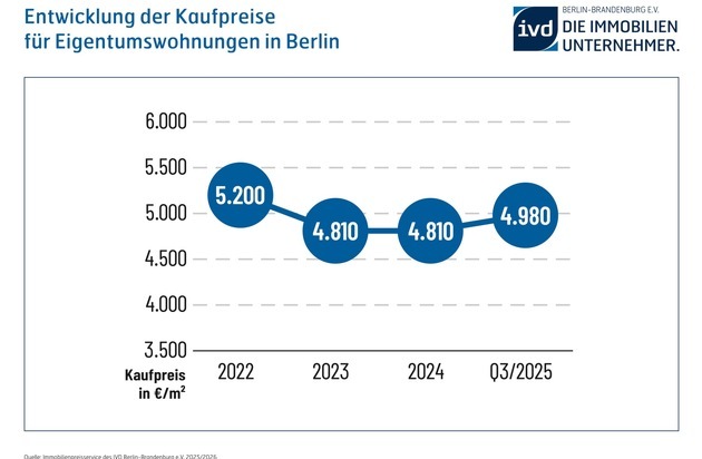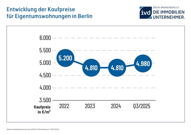 Der durchschnittliche Kaufpreis für eine Eigentumswohnung in Berlin beträgt laut dem IVD Wohnimmobilienpreisservice rund 4.980 Euro pro Quadratmeter. Das bedeutet eine Steigerung von