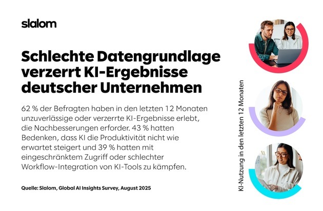 Die Wahrnehmung von KI in deutschen Unternehmen sieht anders aus als der Hype vermuten lässt: rund zwei Drittel (62 Prozent) haben in den letzten 12 Monaten unzuverlässige oder verzerrte KI-Ergebnisse erlebt, die Nachbesserungen erfordern, 43 Prozent hatten Bedenken, dass KI die Produktivität nicht wie erwartet steigert und 39 Prozent hatten mit eingeschränktem Zugriff oder schlechter Workflow-Integration von KI-Tools zu kämpfen. Das zeigt die aktuelle Studie des global tätigen Technologieberatungsunternehmens Slalom unter 2000 Befragten weltweit und davon 161 Befragten in Deutschland. "Erfolgreiche KI-Implementierung beginnt mit qualitativ hochwertigen, strukturiert erhobenen und miteinander verbundenen Daten. Ohne diese solide Grundlage und funktionierende Datenplattformen können auch die fortschrittlichsten Algorithmen keine vertrauenswürdigen Ergebnisse liefern", erklärt Dr. Stephan Theis, Managing Director Daten und KI bei Slalom Germany. Doch etwa ein Drittel der Befragten (32 Prozent) hat sich in den letzten 12 Monaten unzureichend geschult oder unterstützt gefühlt, während rund ein Viertel (23 Prozent) berichtet, dass KI ihre Arbeitsbelastung erhöht oder zu unrealistischen Leistungserwartungen geführt hat. Nur 5 Prozent geben an, dass KI ihre Erwartungen bisher erfüllt oder übertroffen hat.