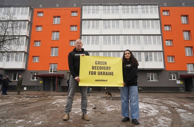 Grüner Wiederaufbau: Greenpeace versorgt ukrainischen Wohnblock mit unabhängiger Wärme
